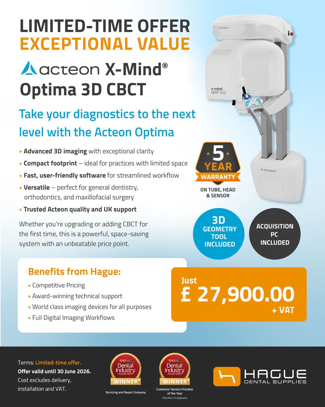 Additional Benefits of the Acteon Optima 3D CBCT include: